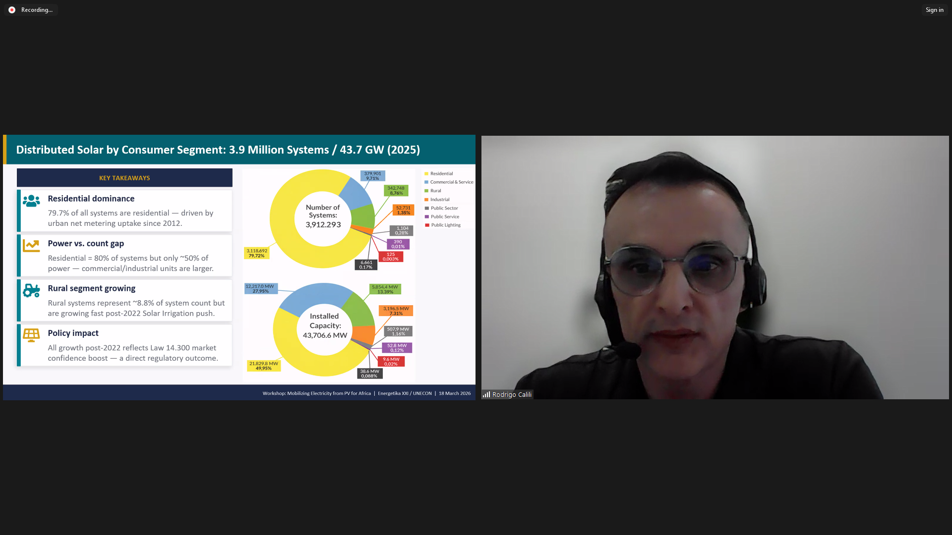 Онлайн-семинар прошел в формате двух сессий и панельной дискуссии. Первая сессия затронула основные технические и экономические аспекты, а также малые изолированные электросети, состояние ирригации, определение роли государства и частного бизнеса и развитие навыков. В рамках второй сессии был рассмотрен опыт разных стран. Семинар завершился панельной дискуссией на тему «Цепочка создания стоимости для ирригации на солнечных батареях в Африке». В семинаре приняли участие эксперты из Германии, Бразилии, Китая, России и стран Африки.